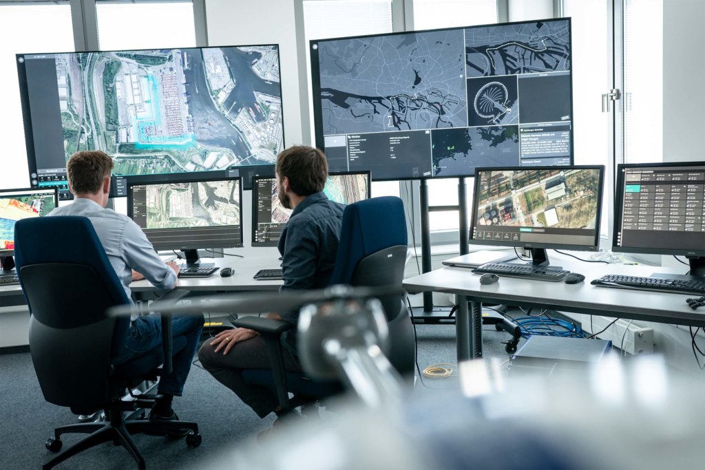 HHLA Sky’s unique drone control center was developed as the first end-to-end solution for large-scale, industrial and security drone operations beyond visual line of sight (BVLOS). The innovative IoT platform connects, and controls unmanned systems. It allows complete management, monitoring, and reporting across all aspects and tasks of over 100 industrial drones simultaneously – from one integrated control center that can be operated globally. Drones securely connected with this IoT platform can carry out a wide range of assignments, e.g. transmitting real-time video feeds and collecting structured and repeatable data. The IoT platform has cyber security built into its core and offers broad analysis and auditing features.